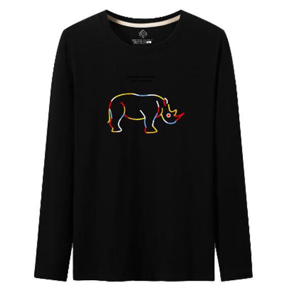 動物柄プリント サイ ラウンドネック長袖カットソー アニマルキャラクター メンズ トップス 動きやすい ゆったり 大きいサイズ カ...