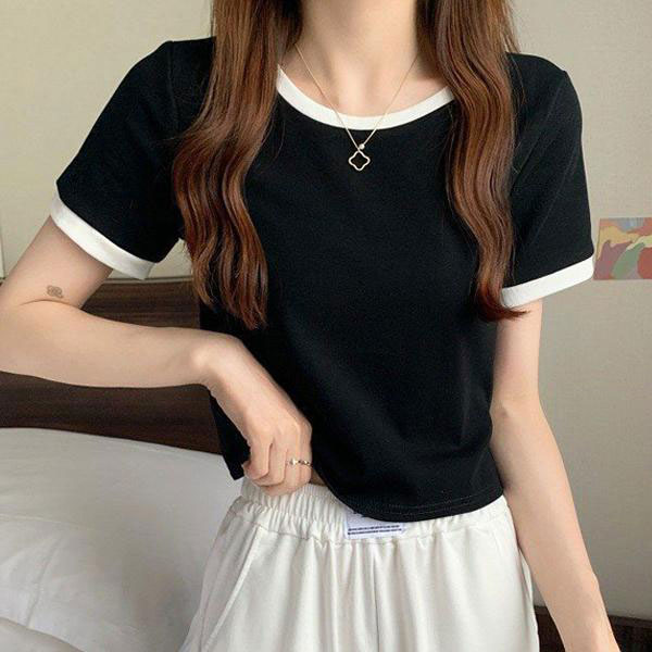 レディース リンガーTシャツ 半袖 スリム スリムフィット バイカラー 着回し Tシャツ カットソー トップス カジュアル おしゃ...