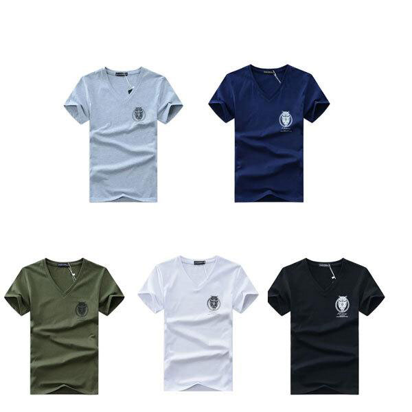 メンズ VネックTシャツ ミミズクデザイン スリムフィット 半袖 インナー コットン 大きいサイズ 動きやすい 春 夏