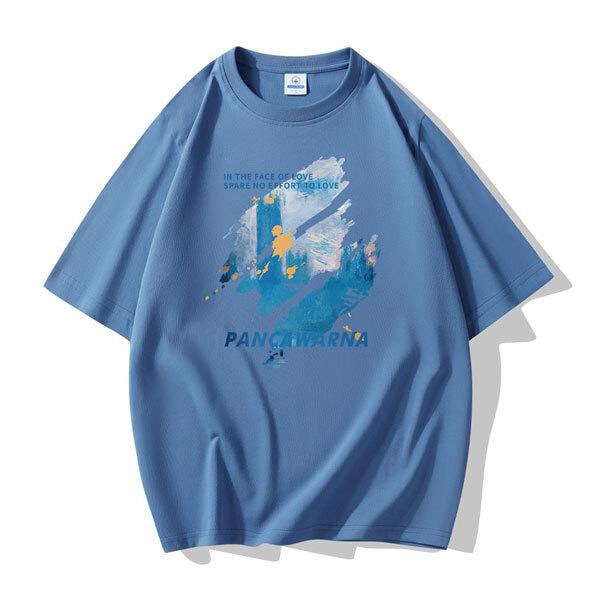 メンズプリントTシャツ 半袖 シンプル 動きやすい ストレスフリー 耐久性 大きいサイズ 春 夏
