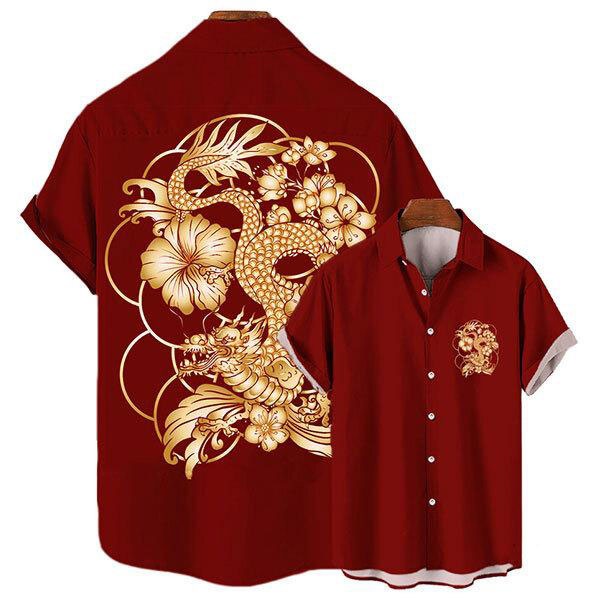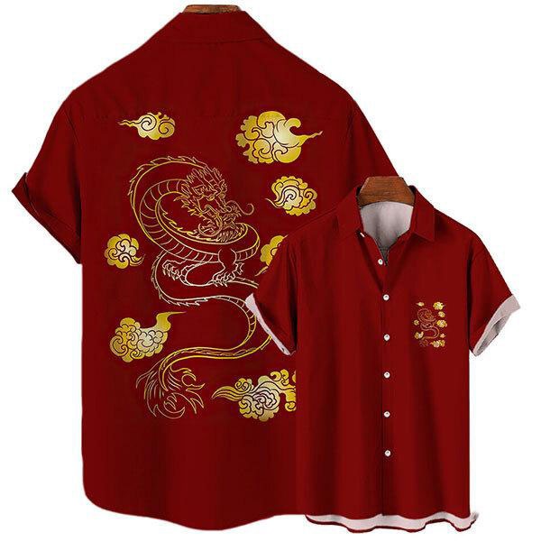 メンズ 半袖シャツ 龍デザイン アセテート素材 8サイズ 15タイプ 通気性 吸湿性 洗濯可能 耐摩耗性 色褪せしにくい シワにな...