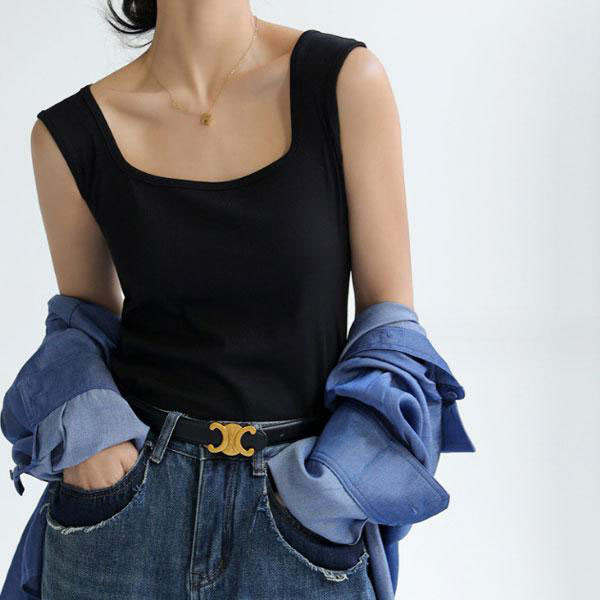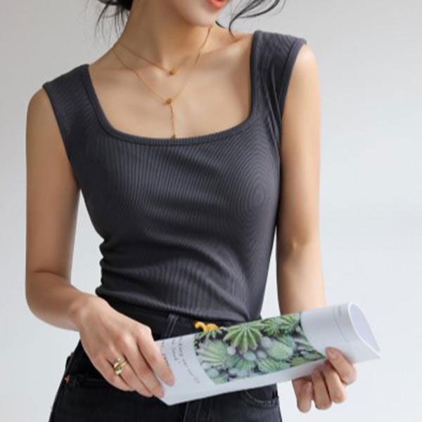 レディース スクエアネック リブ タンクトップ インナー トップス 幅広 ショルダー 着回し カジュアル レイヤード ベーシック ...