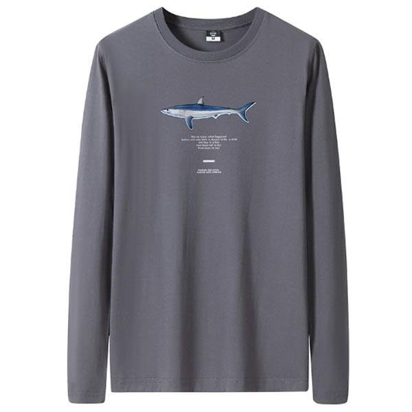 長袖Tシャツ ラウンドネック 9サイズ 11カラー シャーク プリント メンズ ロンT トップス インナー ベーシック シンプル ...