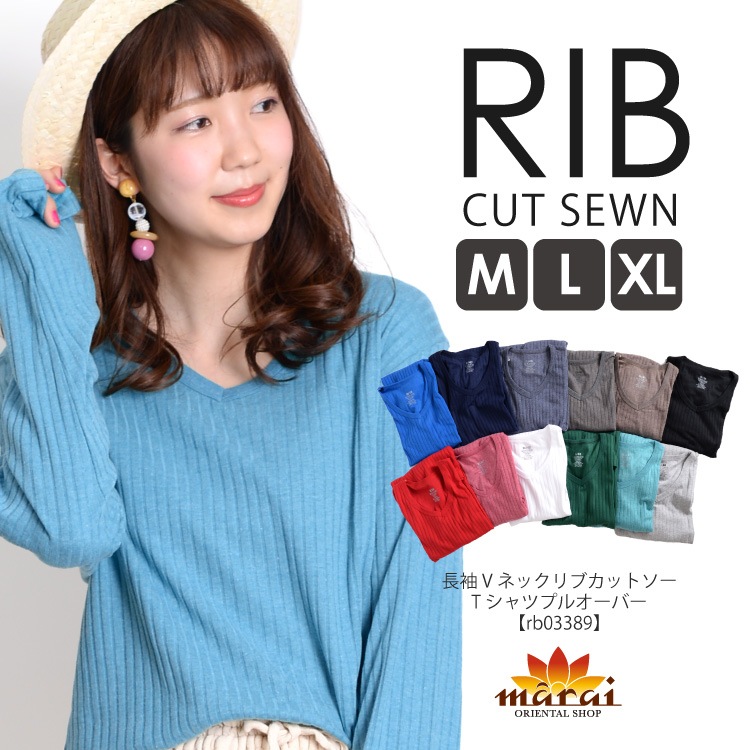 マルチにもっとお洒落に。Vネックリブ長袖カットソー