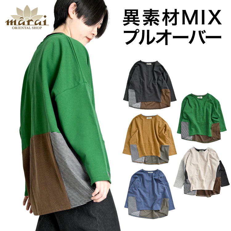 トップス ロンT レディース 飽きがこない異素材MIX。プルオーバートップス カットソー 長袖 ビッグシルエット オーバーサイズ ...