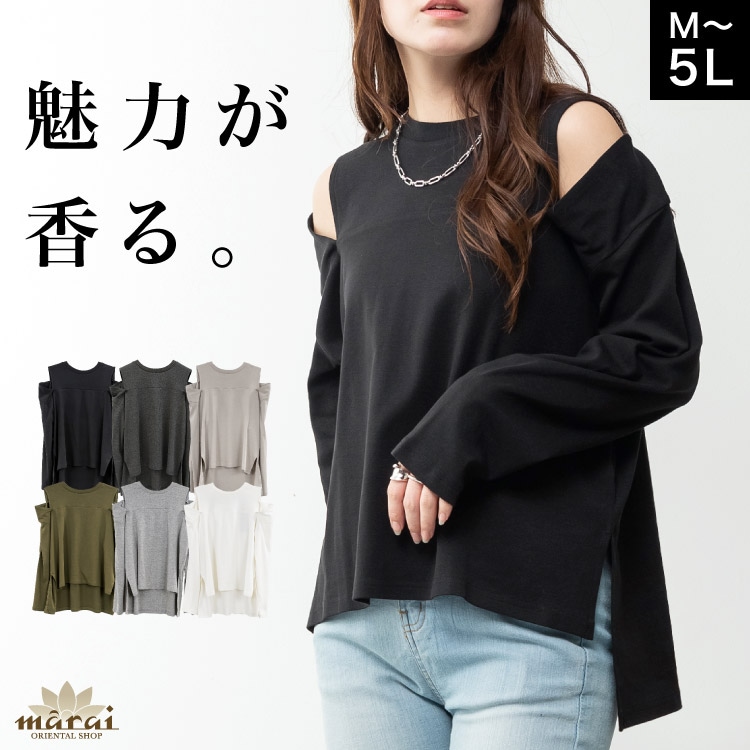 オープンショルダー ロンT カットソー 長袖 レディース ショルダーカット 魅力が香る。オープンショルダーロンT トップス 大きい...