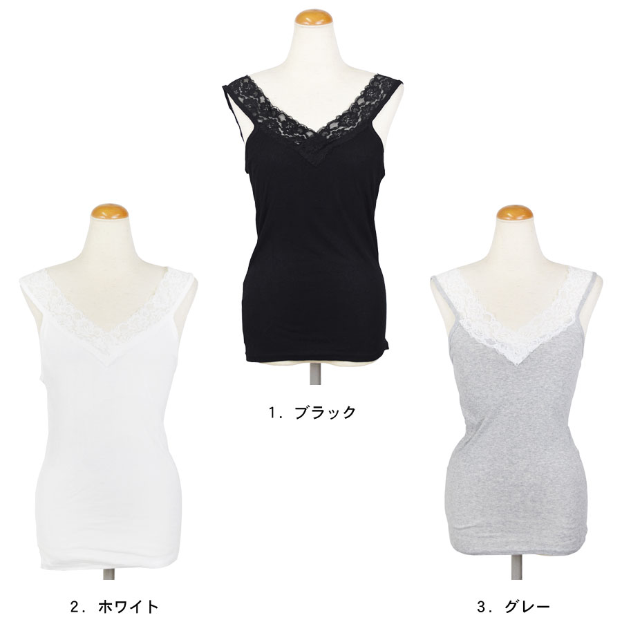 キャミソール レース Vネック レディース インナー 下着 肌着 重ね着 レイヤード 大人 可愛い 【送料pt100】