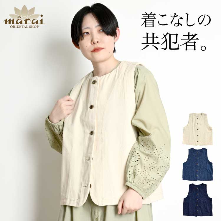デニムベスト レディース レイヤード メンズ ユニセックス 着こなしの共犯者。デニムベスト 前開き ボタン 羽織 重ね着 トップス...