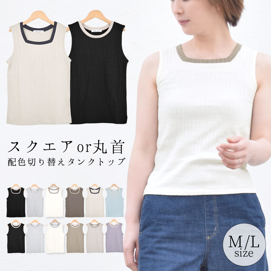タンクトップ スクエアネック 丸首 ノースリーブ リブタンク リブ レディース トップス 【送料pt100】