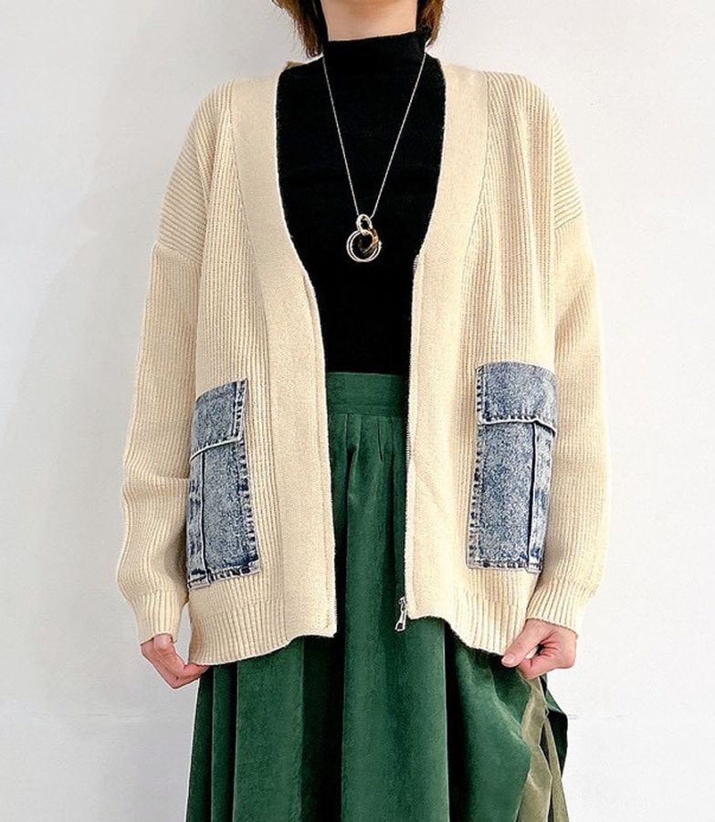 デニムポケットニットカーデ
