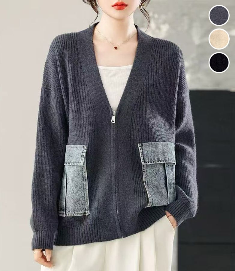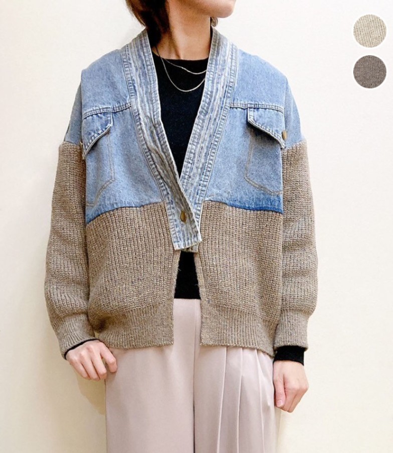[30%OFF]COCO DEAL ブークレ配色リブポケットカーディガン