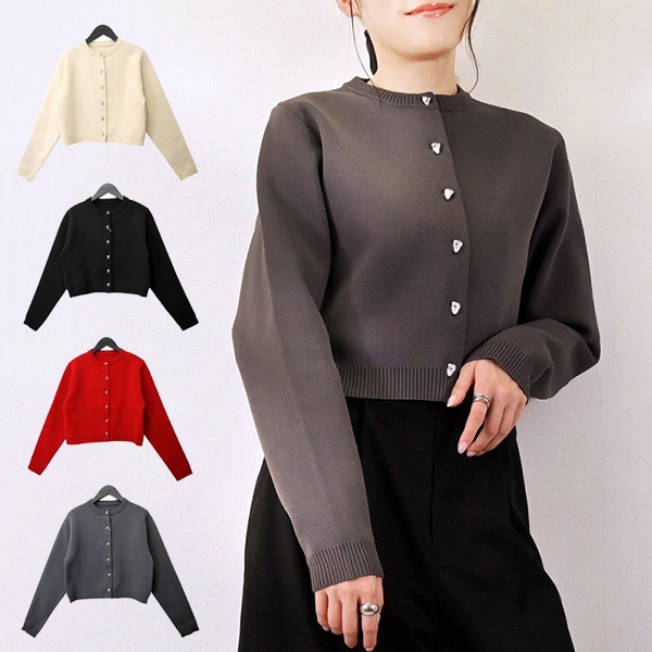 ポリウーリーメタルボタンクロップドニットカーディガン
