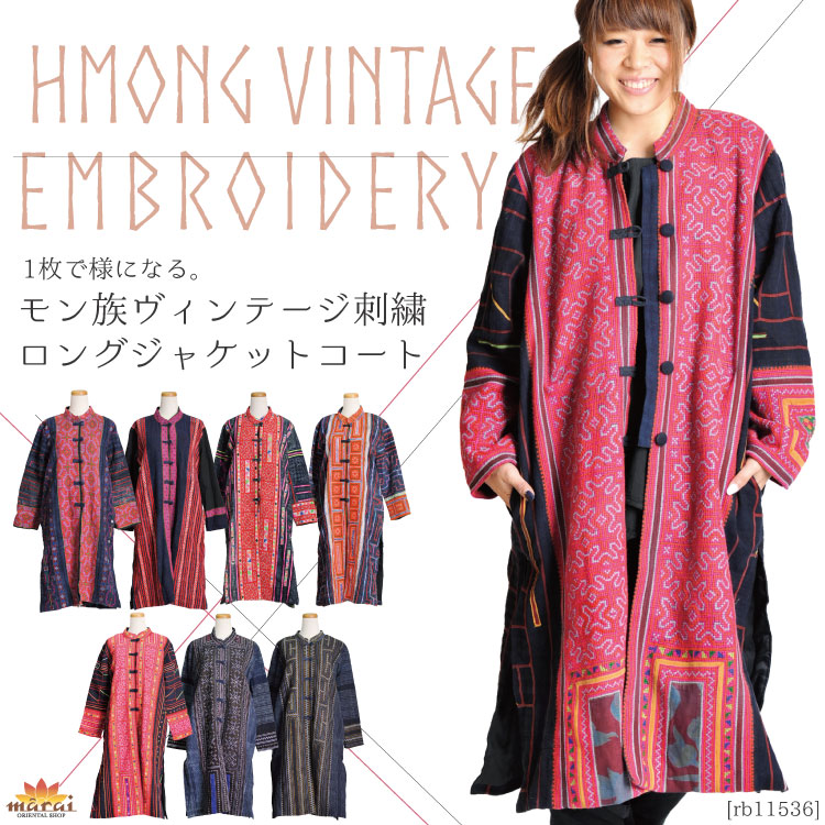 【期間限定10%OFF】1枚で様になる。モン族ヴィンテージ刺繍ロングジャケットコート