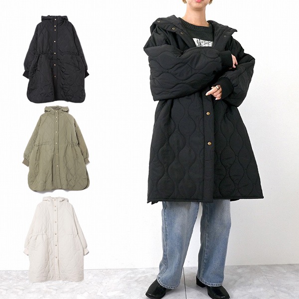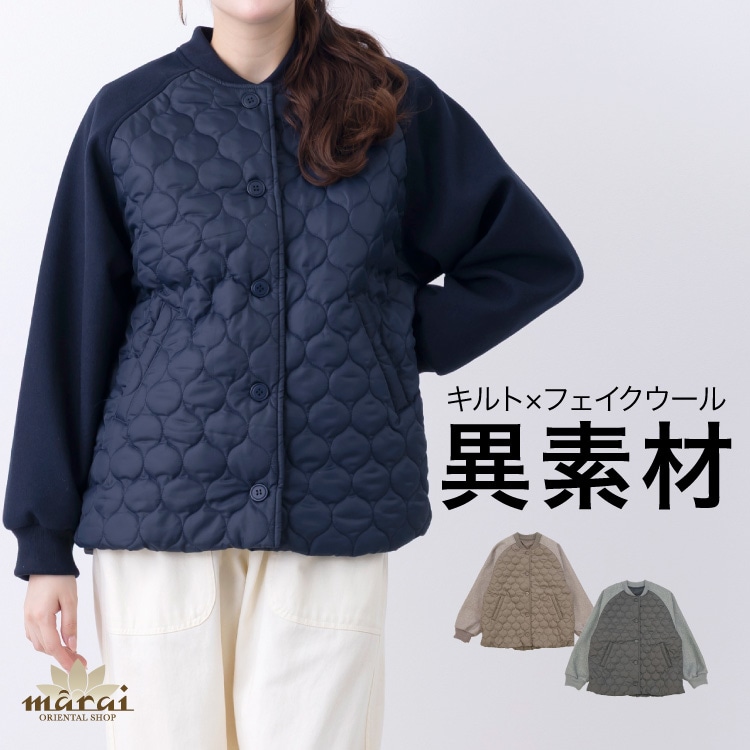 ブルゾン キルティング ジャケット コート レディース アウター 羽織 ミドル丈 異素材 切替 キルト フェイクウール キルティン...