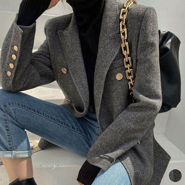 金ボタン ヘリボーン柄 ロング丈 ジャケット