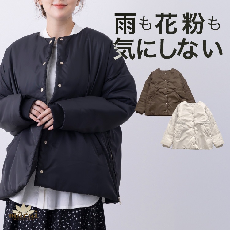 ブルゾン ジャケット 撥水 レディース 防風 防寒 撥水加工 ノーカラーブルゾン 大きいサイズ 花粉リリース加工 春 秋 冬 軽量...