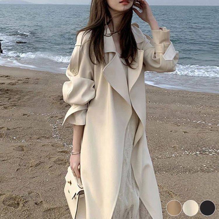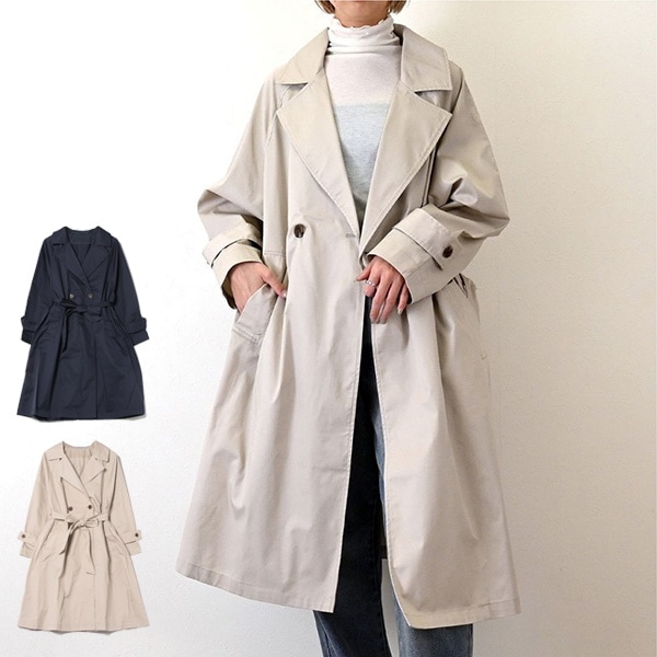 レディース ロング丈 トレンチコート テーラード コート アウター ウエストマーク ゆったり ベーシック シルエット 体型カバー ...