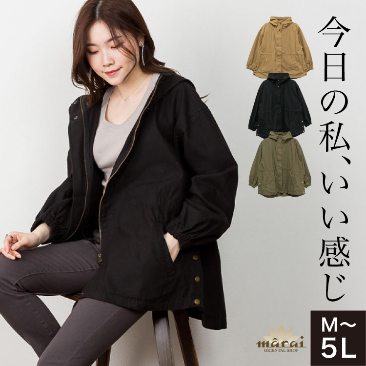 マウンテンパーカー レディース コットン 綿 春 秋 今日の私、いい感じ。ボリューム袖マウンテンパーカー パーカー フード付き 軽...