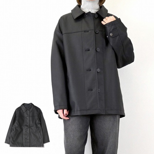 個性的 バックルベルト フェイクレザー ショート丈ジャケット