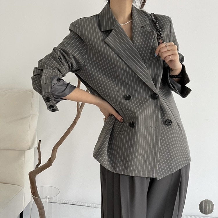 きれいめ ストライプ柄 ダブル ジャケット アウター