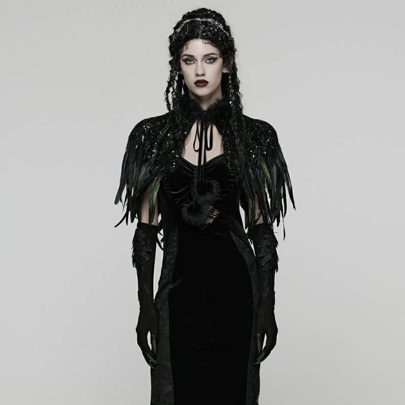 glareshop グレアショップ「M/2XL」JXA023-B■ゴシックスパンコールフェザーショール 黒 レディース | 地雷系...