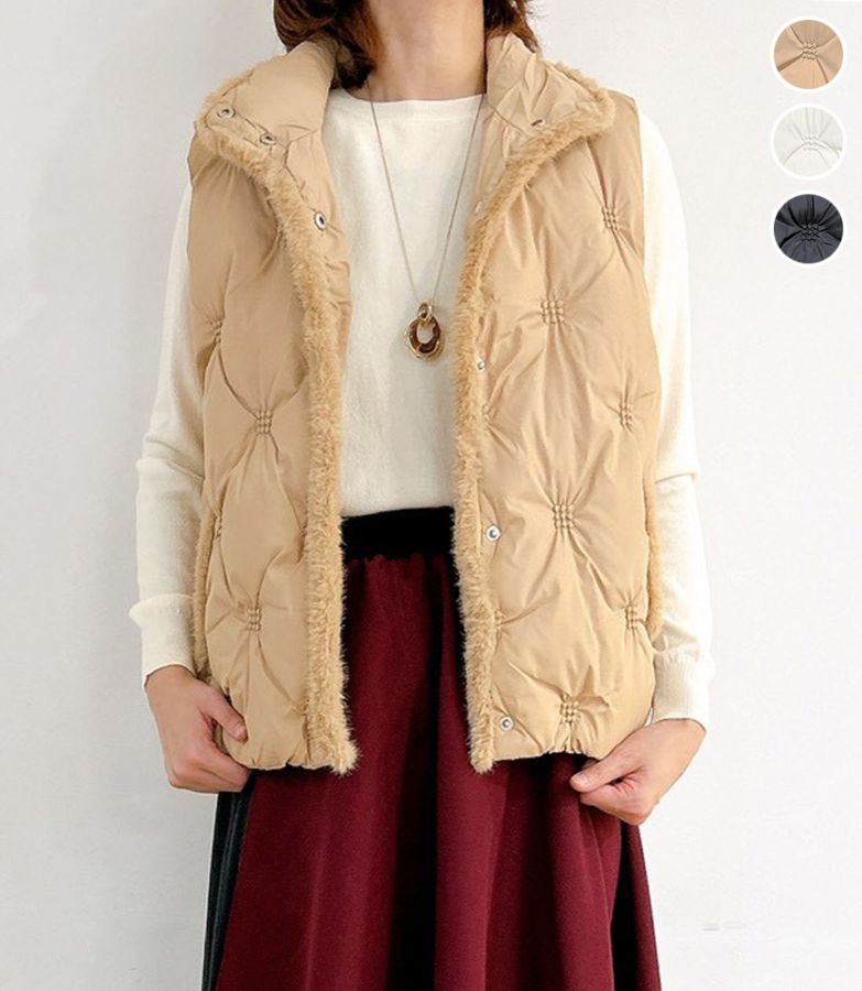 在庫一掃セール 秋冬 イタリア インポート ジャケット BARBARA ALVISI ダマスク柄ロングベスト 黒・ベージュ