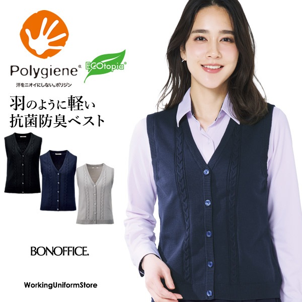 事務服【抗菌防臭/ポリジン】ベスト KK7125 ボンオフィス エアエアレニュー天竺