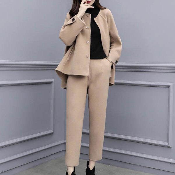 レディース 襟無し ジャケット スリム パンツ カジュアルスーツ ポケット付き ジッパー ショート丈 クロップドパンツ フレア シ...