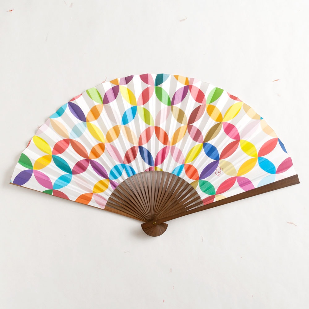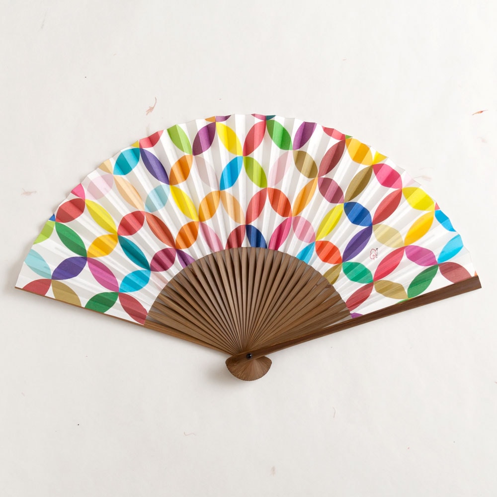 【扇子】女房扇 彩り水玉 (SB-004) 和紙の扇子6寸5分 和詩倶楽部 Sensu fan Washi-club ※在庫限り