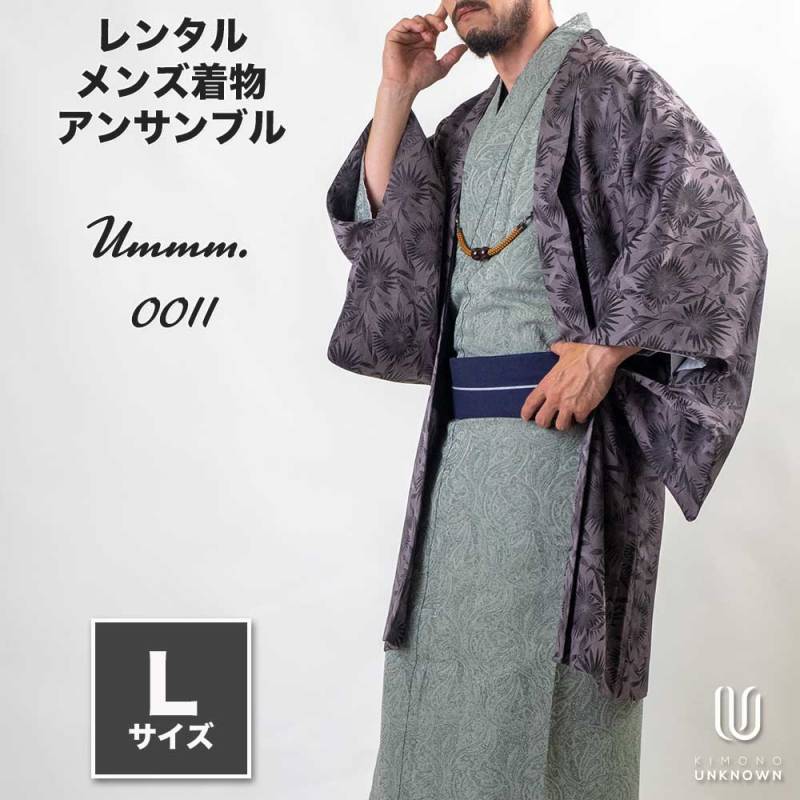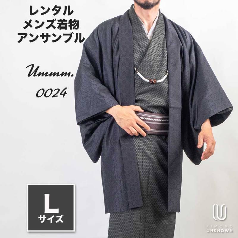 |往復送料無料|【レンタル】メンズ着物アンサンブル【対応身長170cm~180cm】【 Lサイズ】フルセットーUmmm.0024|...