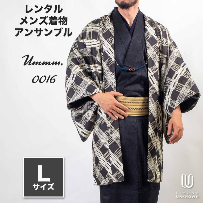 |往復送料無料|【レンタル】メンズ着物アンサンブル【対応身長170cm~180cm】【 Lサイズ】フルセットーUmmm.0016|...