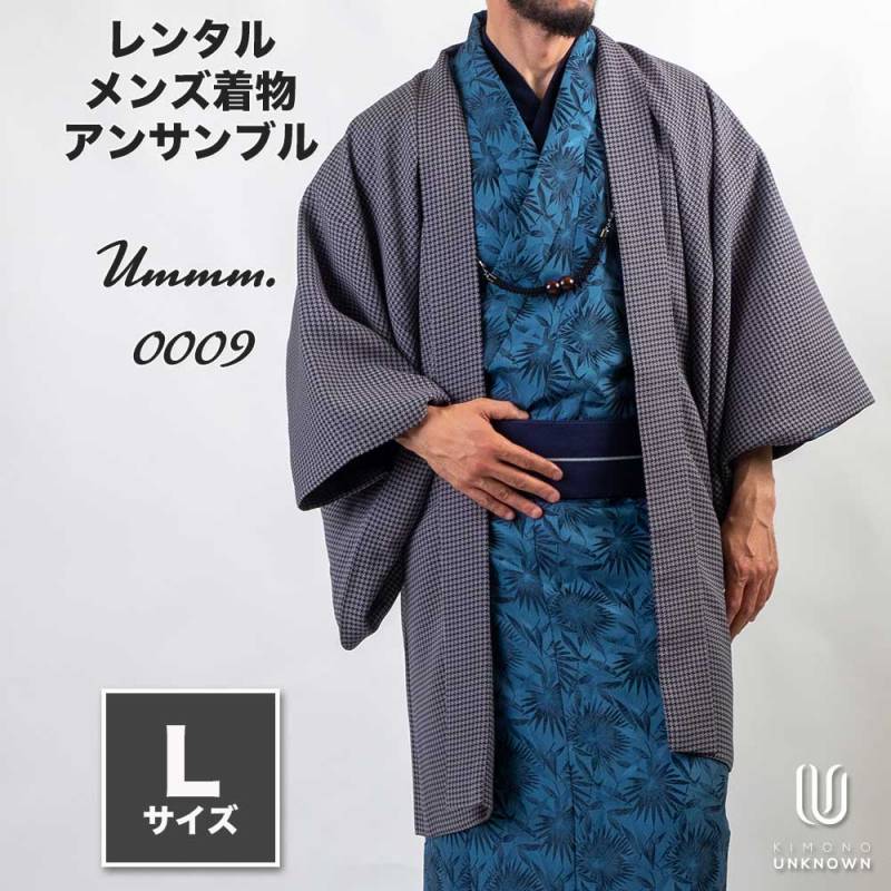 |往復送料無料|【レンタル】メンズ着物アンサンブル【対応身長170cm~180cm】【 Lサイズ】フルセットーUmmm.0009|...