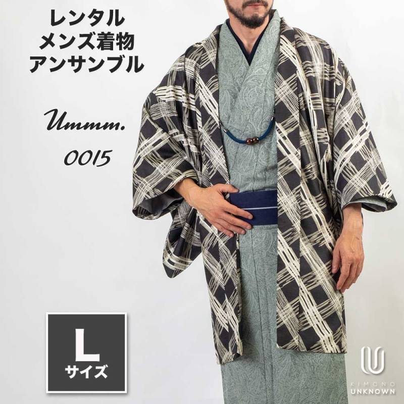 |往復送料無料|【レンタル】メンズ着物アンサンブル【対応身長170cm~180cm】【 Lサイズ】フルセットーUmmm.0021|...