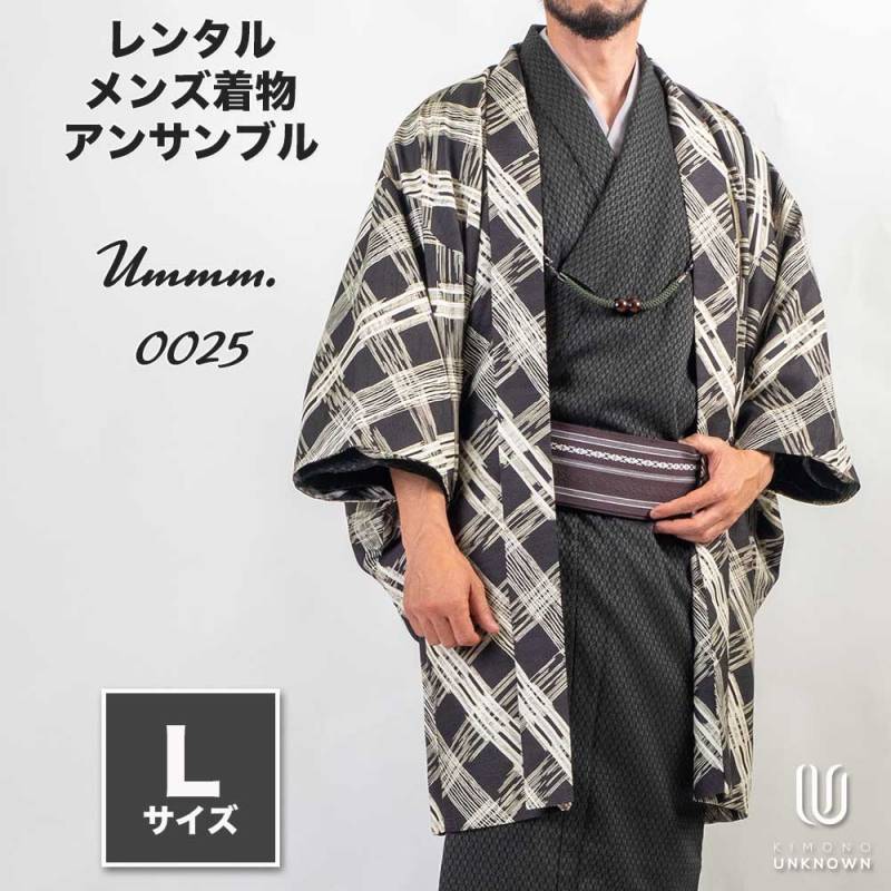 |往復送料無料|【レンタル】メンズ着物アンサンブル【対応身長170cm~180cm】【 Lサイズ】フルセットーUmmm.0025|...