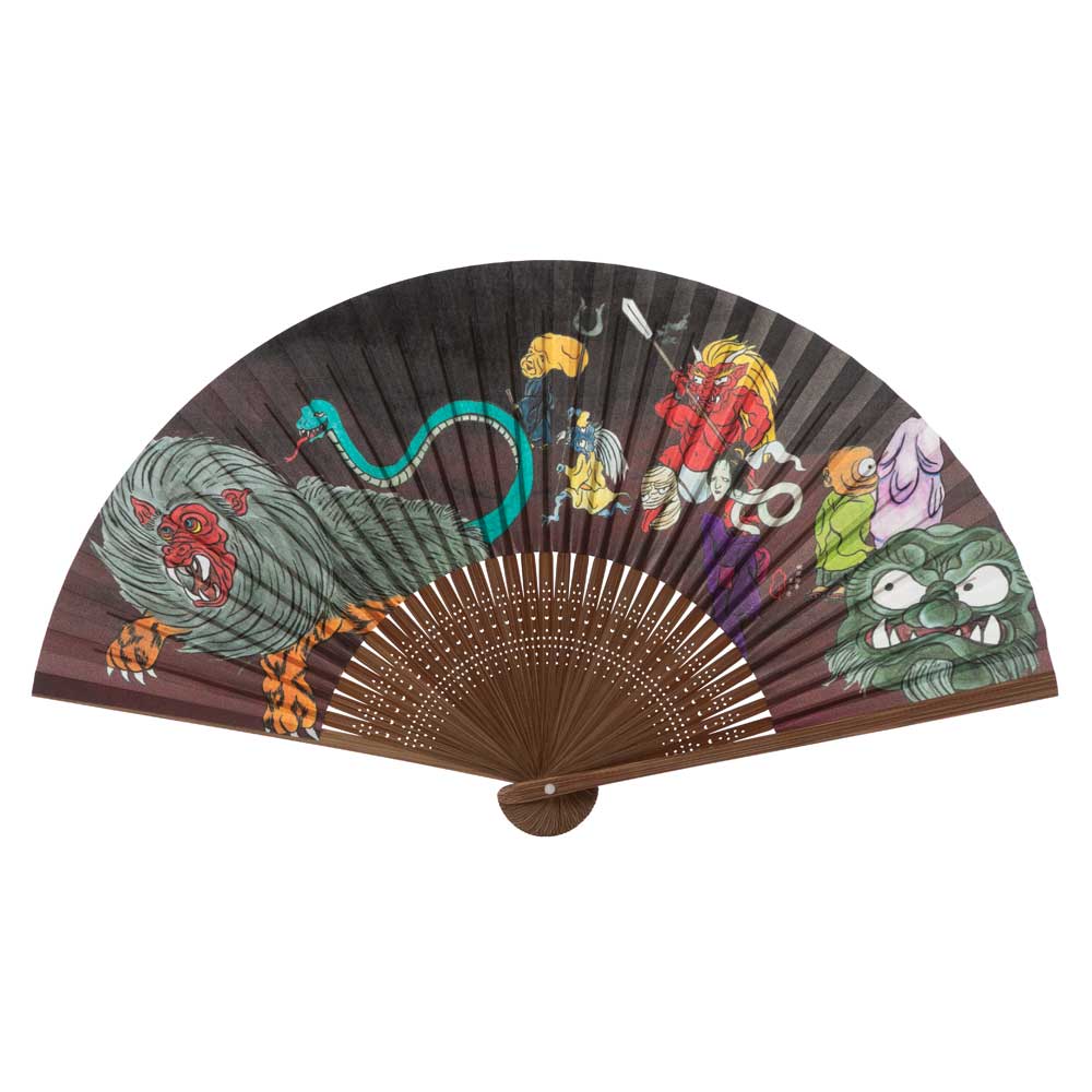 和詩倶楽部 怪々扇 百鬼夜行 後方 和紙の扇子 七寸五分 約23cm 少し大きめ 男性用の定番サイズ メンズ 和柄 手張り製 国産...