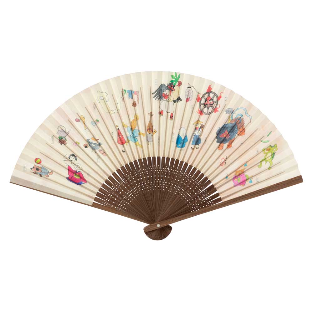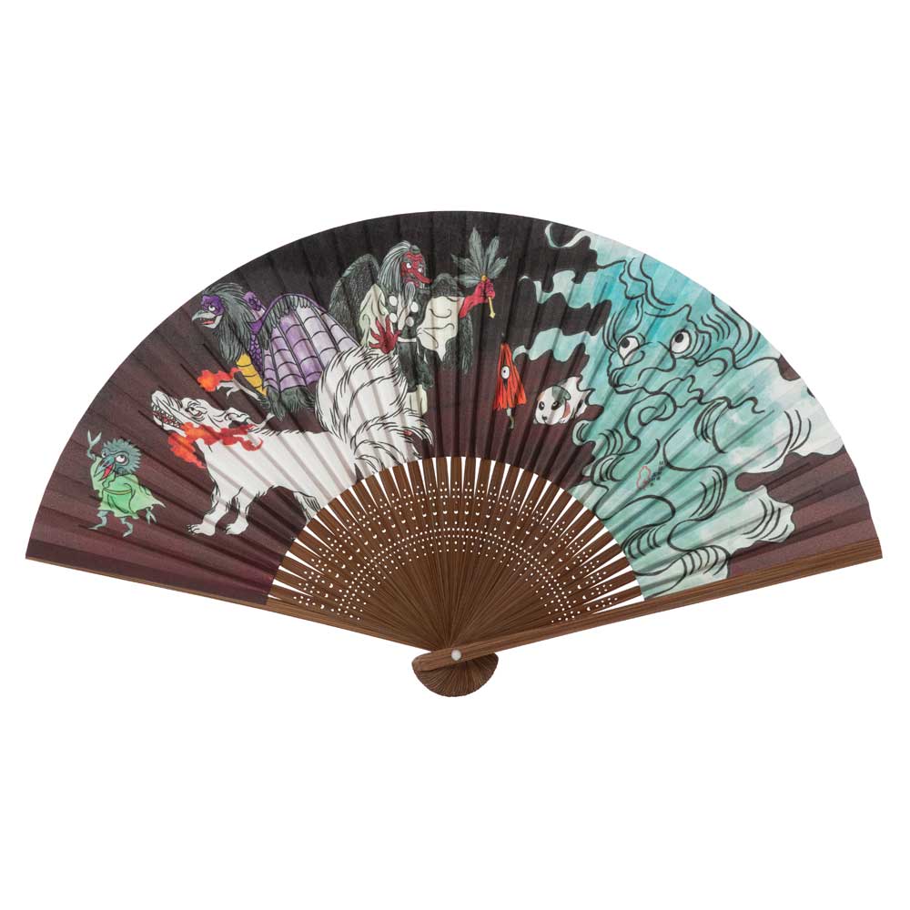 和詩倶楽部 怪々扇 妖怪絵巻 其の参 和紙の扇子 七寸五分 約23cm 少し大きめ 男性用の定番サイズ メンズ 和柄 手張り製 国...