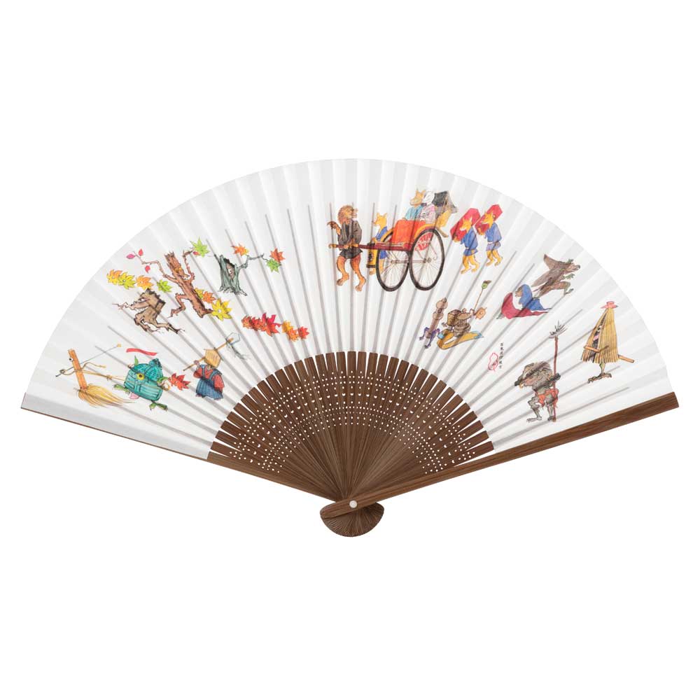 和詩倶楽部 怪々扇 妖怪絵巻 其の壱 和紙の扇子 七寸五分 約23cm 少し大きめ 男性用の定番サイズ メンズ 和柄 手張り製 国...