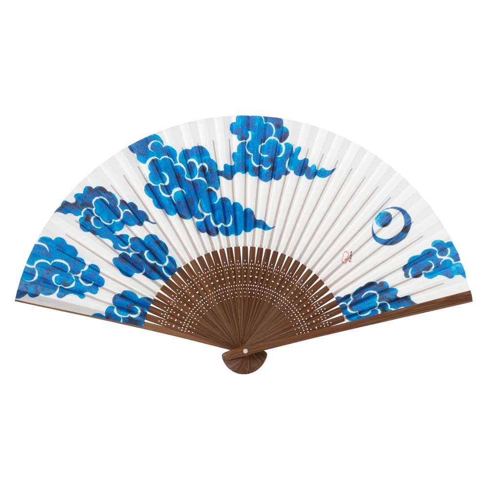 和詩倶楽部 仁清扇 青花雲紋 和紙の扇子 七寸五分 約23cm 少し大きめ 男性用の定番サイズ メンズ 和柄 手張り製 国産扇骨3...
