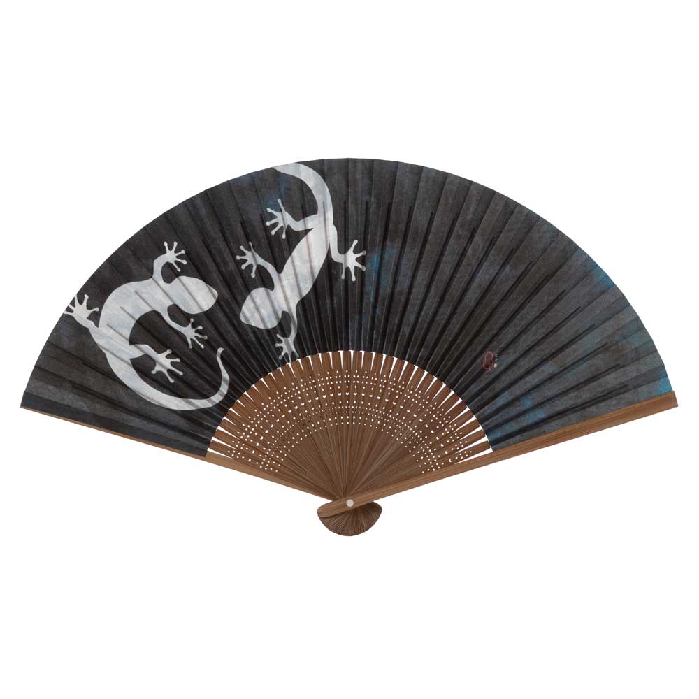 和詩倶楽部 進撃扇 家守 影 ヤモリ 和紙の扇子 七寸五分 約23cm 少し大きめ 男性用の定番サイズ メンズ 和柄 手張り製 国...