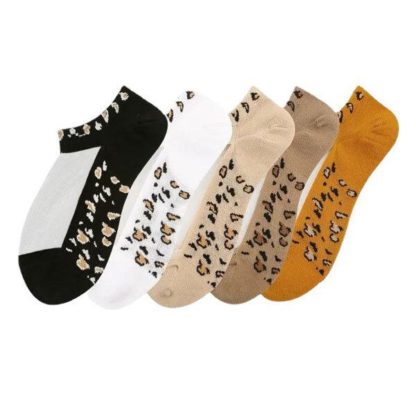レディース ヒョウ柄 シースルー ソックス 5カラーワンセット フリーサイズ 甲の部分 シースルー 滑り止めあり 吸湿発散性 通気...