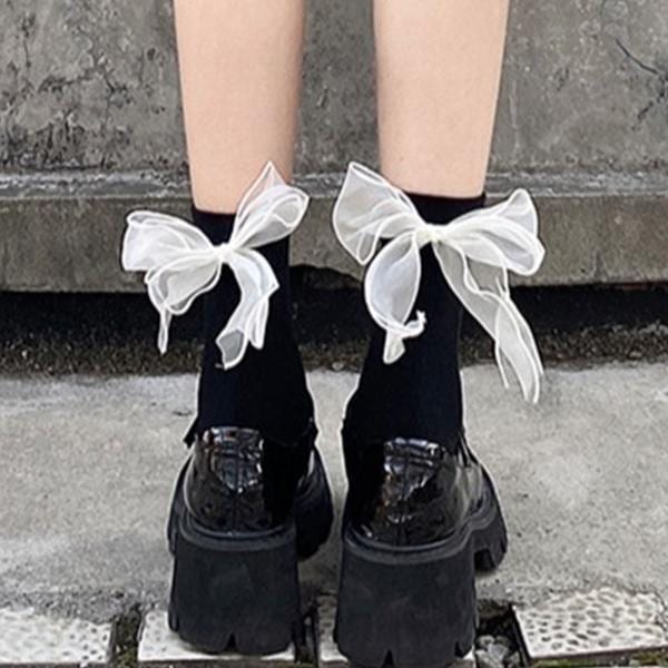 レディース バックリボン シアーリボン ロリータ風 ソックス フリーサイズ 靴下 薄手 短め 制服 メイド 可憐 可愛い お洒落