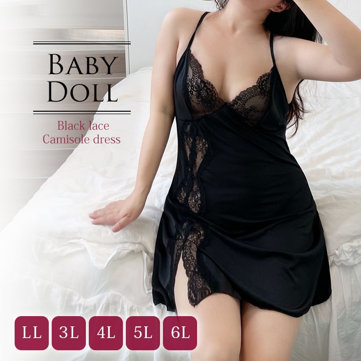 大きいサイズ レディース ルームウェア キャミワンピ ベビードール ネグリジェ ナイトウェア レース LL 3L 4L 5L 6L...