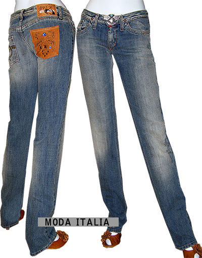 在庫一掃セール イタリア・インポートデニム Gaudi ローライズラインストーン付スリムクラッシュジーンズ