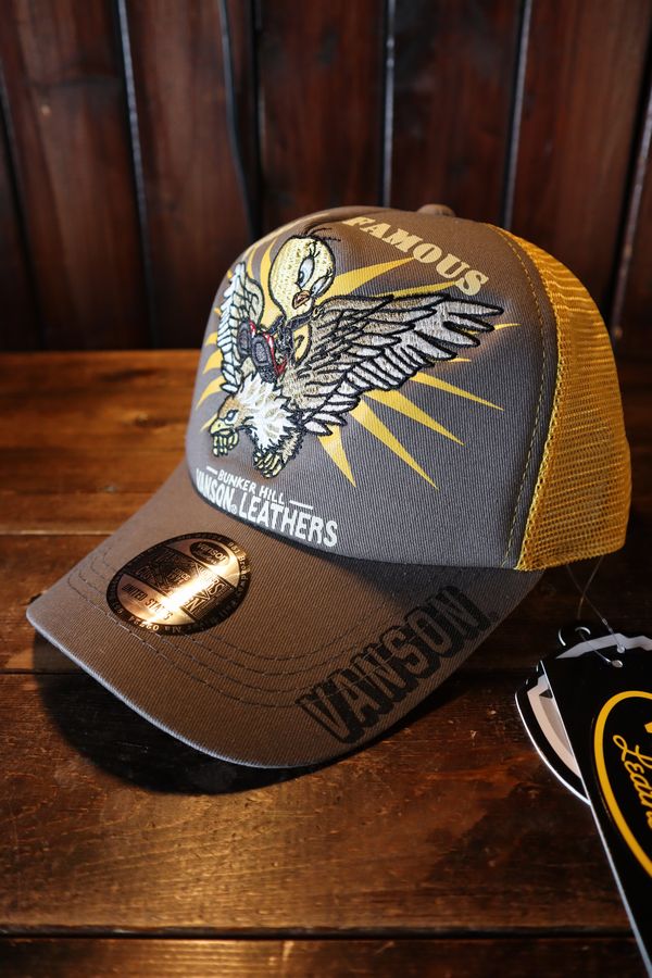 VANSON×Looney Tunes バンソン×ルニーテューンズ LTV-2210 トゥイティ ツイルメッシュキャップ 刺繍 グ...