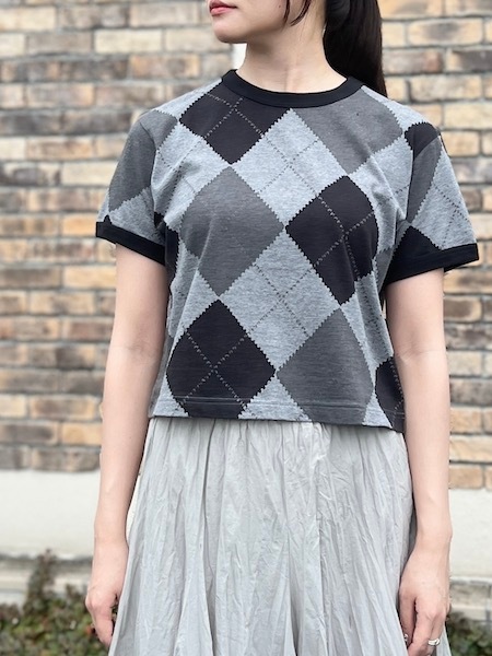 mizuiro-ind./ミズイロインド アーガイルプリントTシャツ ・ 3-210058 『ゆうパケット対応』