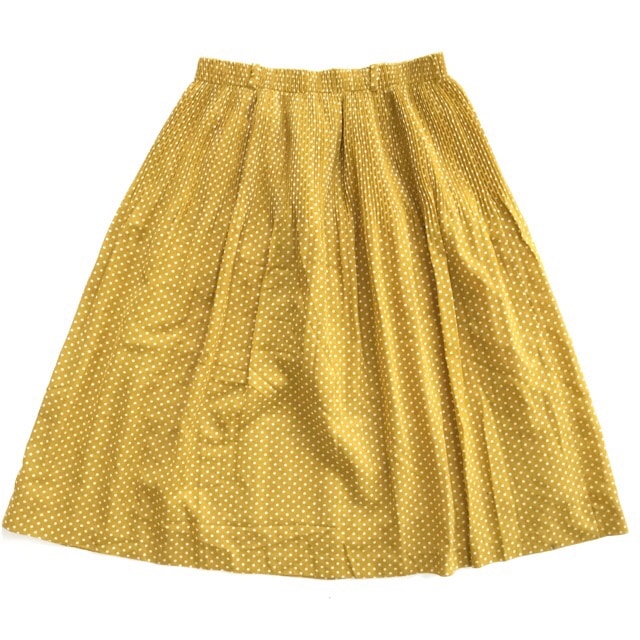 昭和レトロ プリーツスカート ギャザースカート 送料無料 L/黄土色 水玉 ドッド ミモレ丈 ヒダスカート モダン レディース 国...
