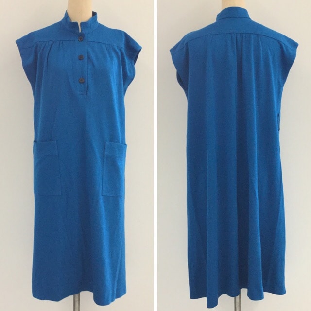 add 昭和レトロ ノースリーブワンピース ニットドレス レディース M-L/青・ブルー 無地 プルオーバー 送料無料 古着卸