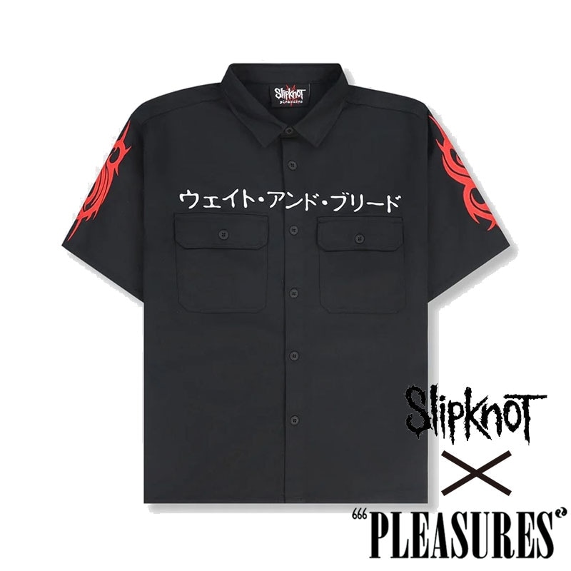 【PLEASURES/プレジャーズ×SLIPKNOT/スリップノット】BLEED WORK SHIRT 半袖シャツ / BLACK