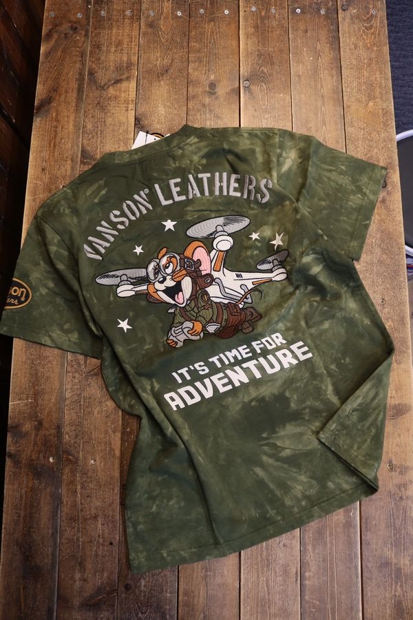VANSON×Tom and Jerry トムとジェリーコラボ TJV-2517 天竺半袖Tee ドローン柄 オリーブタイダイ