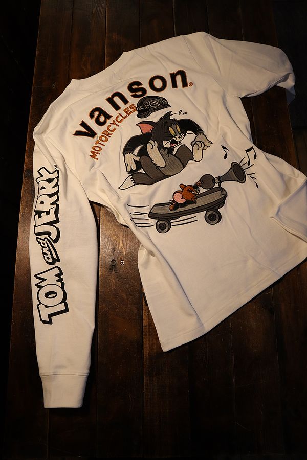VANSON×Tom and Jerry トムとジェリーコラボ TJV-2303 天竺ロンTee 刺繍長袖Tシャツ オフホワイト